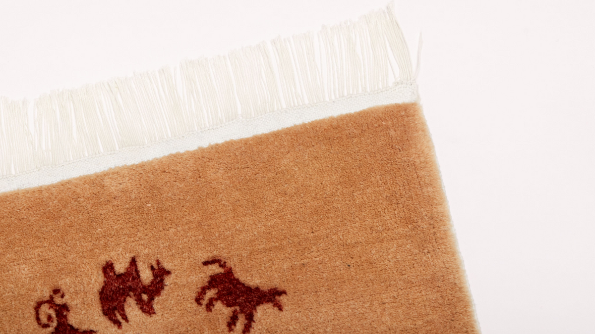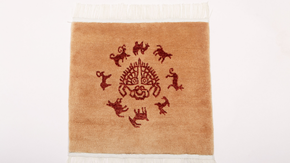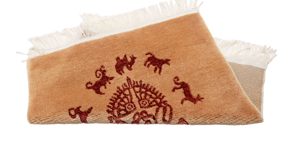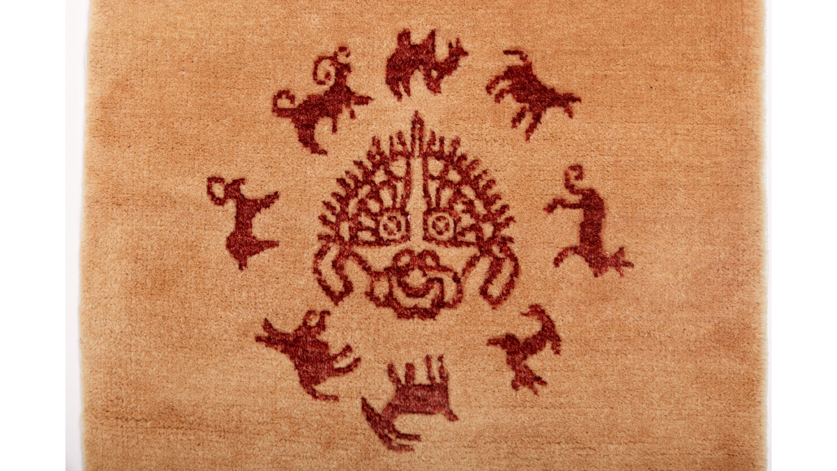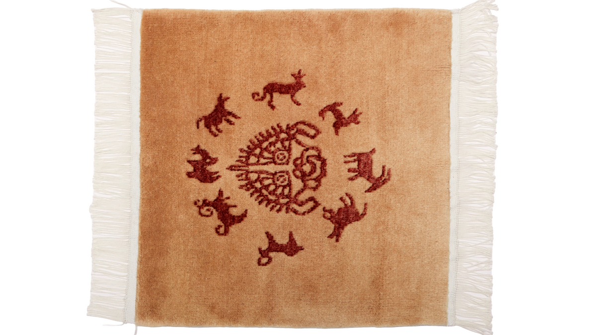 The spiritual heart of the Silk Road. Hand-knotted from world-class Ningxia Tan Sheep Wool, the "Solar Cycle" rug features a central sun-mask totem surrounded by ancient spirit animals. At 1.30 lbs, it combines a sophisticated, low-profile weave with the timeless warmth of natural heritage fibers.
