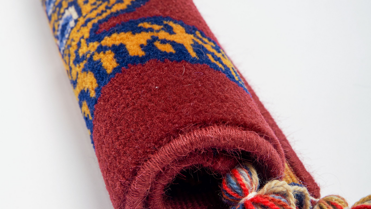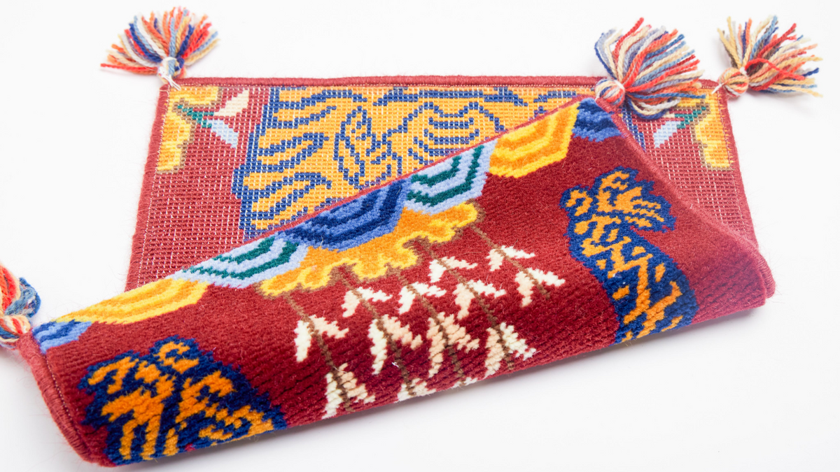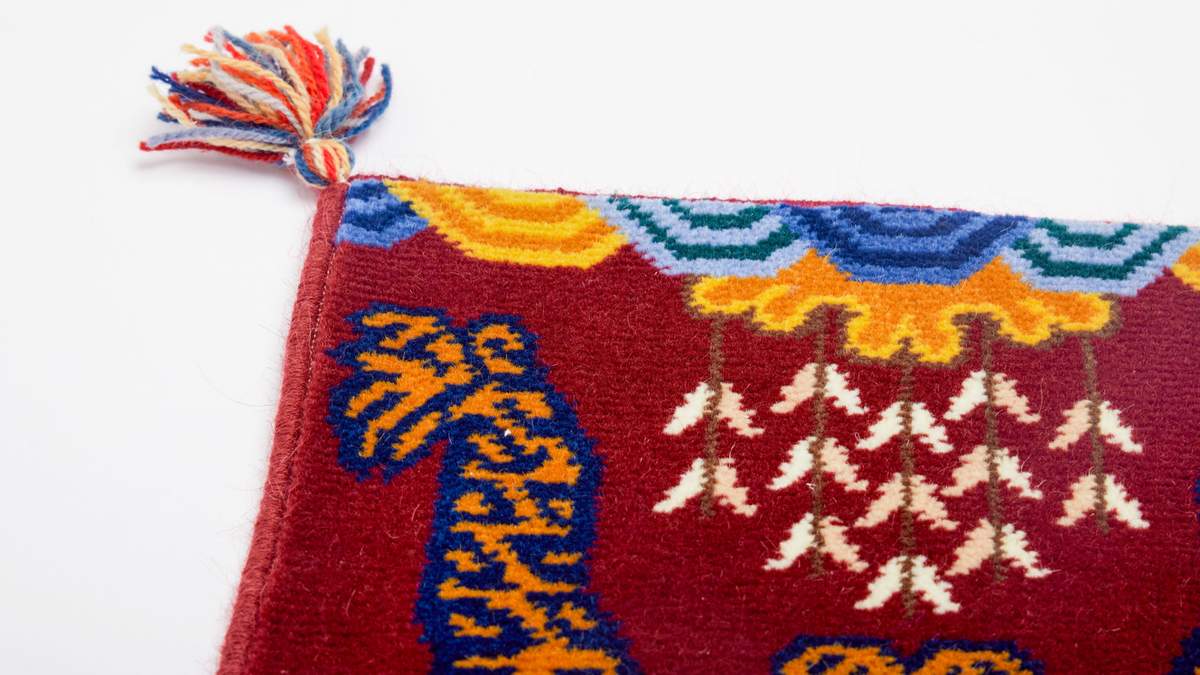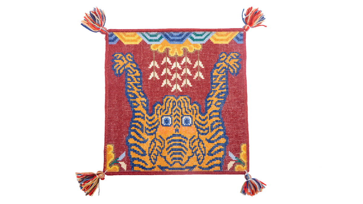 The roar of the ancient Silk Road. Hand-knotted from world-class Ningxia Tan Sheep Wool, the "Tiger Majesty" rug features a vivid crimson guardian totem. At 1.10 lbs, it combines a lush, high-density pile with the protective and regal heritage of the Xixia empire.